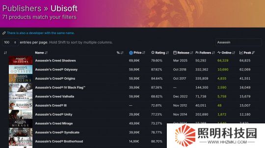 SteamDB官推宣布,《刺客信條:影》Steam在線峰值達到64825人,終于超過2018年游戲《刺客信條:奧德賽》(62069人),正式成為該系列在Steam平臺在線峰值最高的一作。