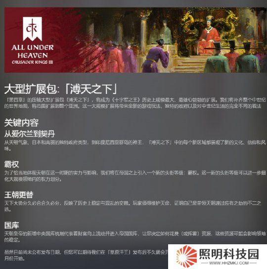 近日,戰(zhàn)爭(zhēng)策略游戲《十字軍之王3》正式公開了第四個(gè)大型DLC擴(kuò)展包“All Under Heaven”(溥天之下),預(yù)計(jì)將于今年年底推出。
