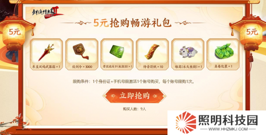 購買了5元基礎禮包后,還能享10元購買暢玩禮包。其中有超級龍血仙丹*1(使用后角色等級可升至99級)、100點輕松點數卡*5(跳活躍一條龍),還有強化精石(7級)*1可將武器或上三件裝備強化等級直接提升到7級,100速的於菟坐騎一個。四個道具性價比超高,均是快速提升游戲的加速道具。