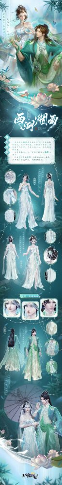 千年事,久相湮。天雨傘,人相伴。以白蛇、青蛇為設計靈感的主題套裝【圣繡·西湖煙雨】也將于神池問影系統登場。