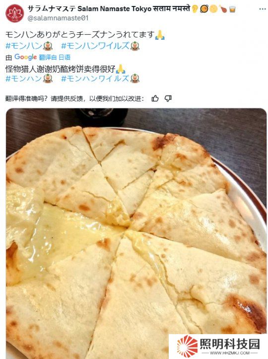 自《怪物獵人:荒野》發布以來,奶酪印度烤餅已經成為了時下日本最受追捧的食物,許多餐館關于奶酪印度烤餅的銷量都迎來了飆升。就連知名連鎖店Salam Namaste,也在社交媒體上感謝《怪物獵人:荒野》為他們帶來的熱度。