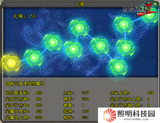 當(dāng)激活青龍(十五)星效果后,化境界面變?yōu)橹烊附缑妫瑢⑹髽?biāo)懸停至每一級(jí)點(diǎn)亮位置,仍可查看所需激活條件及激活后可獲得屬性。