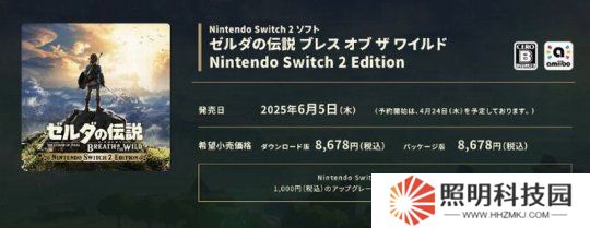 擁有《塞爾達(dá)傳說:曠野之息/王國(guó)之淚》Switch1版的玩家,無(wú)需重購(gòu)游戲,可選擇花費(fèi)1000日元(約合人民幣49元)升級(jí)至Switch2版。