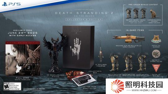 預(yù)購“數(shù)字豪華版”或“典藏版”的玩家,可以提前2天游玩,即在6月24日即可開始體驗。典藏版包含15英寸麥哲倫人雕像、玩偶人雕像、藝術(shù)卡、小島秀夫的一封信和一些游戲內(nèi)物品,售價229.99美元。標準版售價69.99美元,數(shù)字豪華版售價79.99美元。