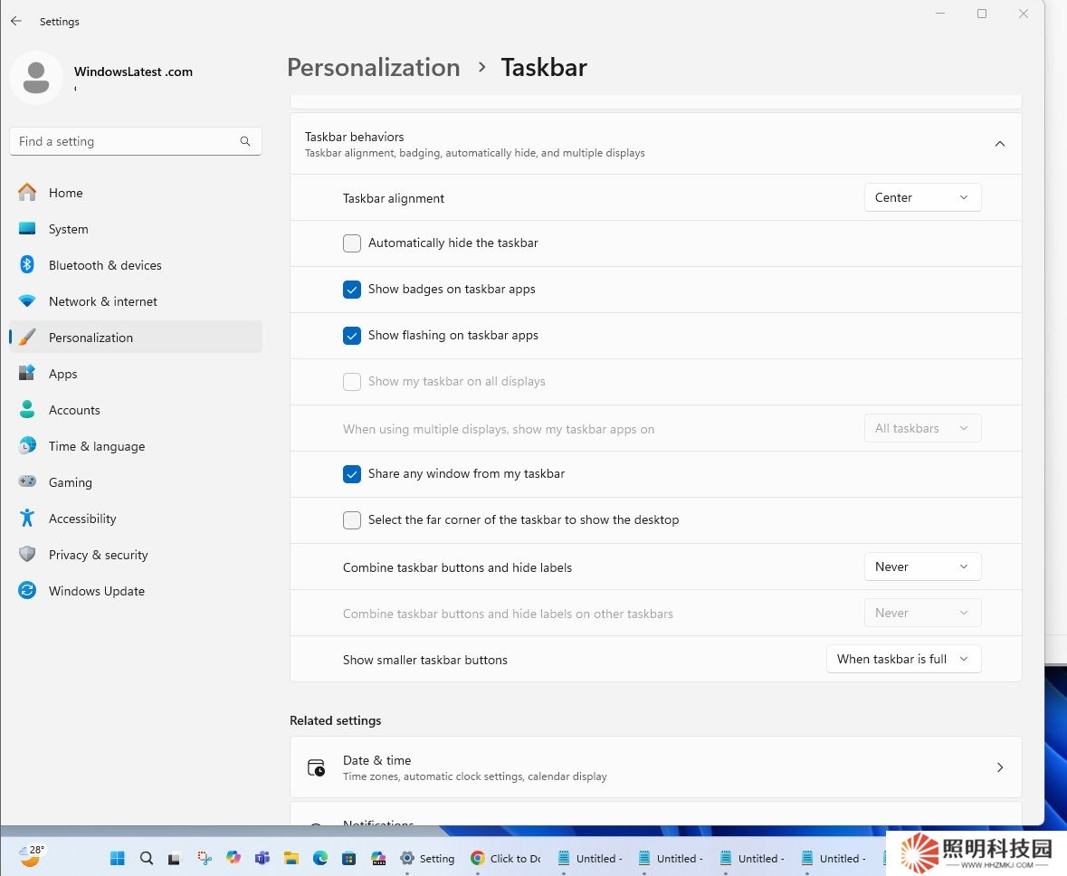 正如前文所述,用戶可以在“任務(wù)欄行為”部分的“任務(wù)欄設(shè)置”中更改任務(wù)欄處理應(yīng)用程序圖標的方式,然后從“顯示較小的任務(wù)欄按鈕”中選擇上述任一選項。