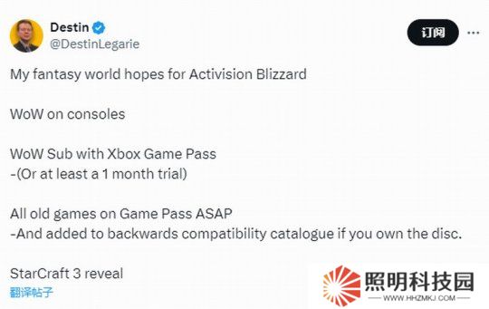隨后Destin闡述了他對動視暴雪的期待,包括在主機(jī)端推出《魔獸世界》,將《魔獸世界》訂閱與XGP綁定,或至少提供一個月的試用。盡快讓所有老游戲登陸XGP,并支持光盤版游戲向下兼容。開發(fā)并發(fā)布《星際爭霸3》。