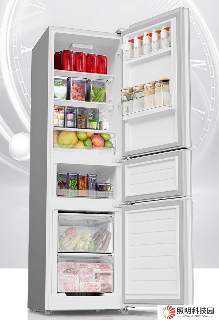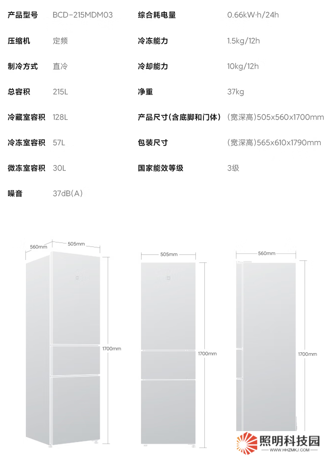 本站從商品頁面獲悉,這款新品約 0.28m3 占地面積、505mm 最大寬度,容積率達(dá) 44.8%。新品有 215L 容量,其中冷藏保鮮 128L,中門微凍 30L,冷凍保存 57L。