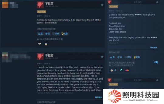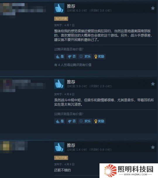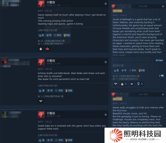 給予好評的玩家認為,《午夜以南》出乎意料的好玩,如果把女主的臉換了就更好。人物表情動作和配音都很自然,美術很贊。雖然戰斗中規中矩,但音樂和劇情都很棒!整體感覺很接近《愛麗絲:瘋狂回歸》。