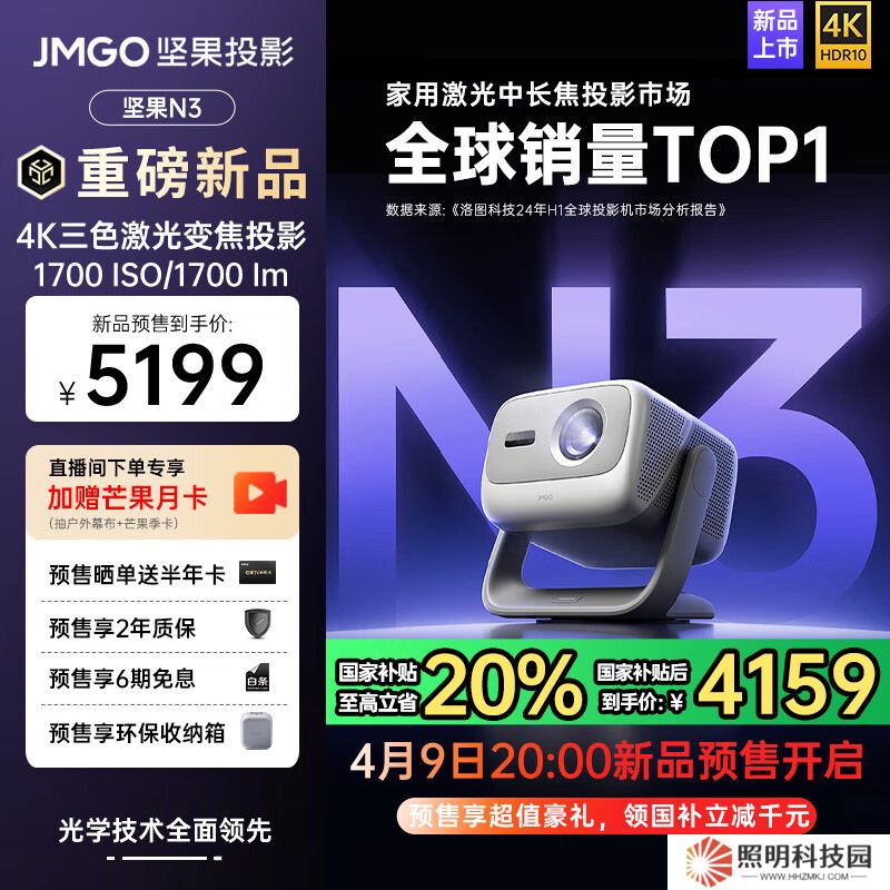 本站 4 月 9 日消息,堅(jiān)果投影今日推出了一款“堅(jiān)果 N3 三色激光變焦投影儀”,首發(fā)價(jià) 5199 元,疊加補(bǔ)貼后 4159 元。