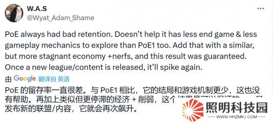 也有玩家指出,《流放之路》的留存率本來就很差,和1代游戲相比,2代目前處于搶先體驗付費階段,終局內容更少,玩法機制也少。再加上類似但更停滯的經濟+職業平衡削弱,這個結果是必然的。一旦發布新的內容,在線率就會再次飆升。