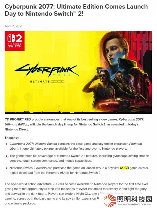 任天堂最近還確認(rèn),部分Switch 2的新游戲卡不會(huì)直接包含游戲本體,而是提供一個(gè)下載密鑰。不過《賽博朋克2077》不在此列。