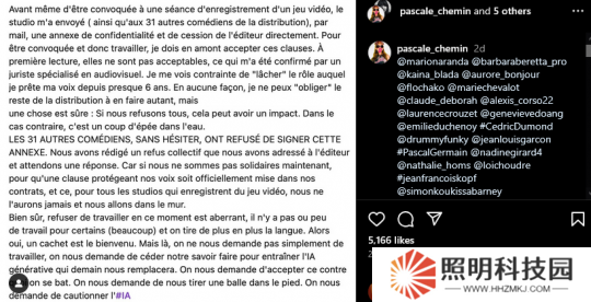 “我現在要被迫放棄我已經配音了近 6 年的角色。我無論如何也不可能強迫其他演員也這么做,但有一件事是肯定的:如果我們都拒絕,可能會產生影響。否則,一切都將是徒勞。”