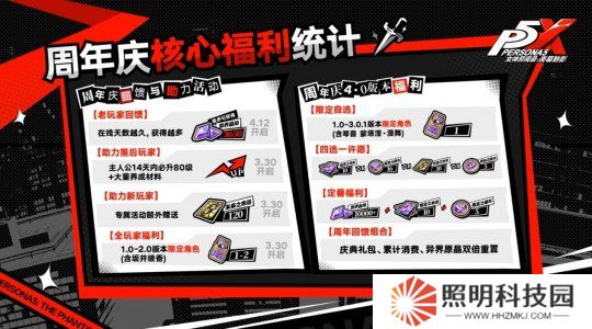 4月10日周年版本上線后,全服所有玩家還可免費獲取1名3.0版本前的限定角色(含P5心之怪盜團全角色)。