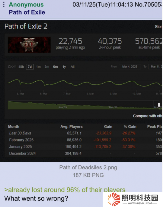 在線人數高熱度爆棚,還有業內大佬站臺,《流放之路2》的前路似乎一片坦途。不過隨著時間的推移,這種熱度似乎并未能保持下去。就在上個月,《流放之路1》推出的新活動,就助力這款2013年老游戲的在線人數,反超了《流放之路2》。