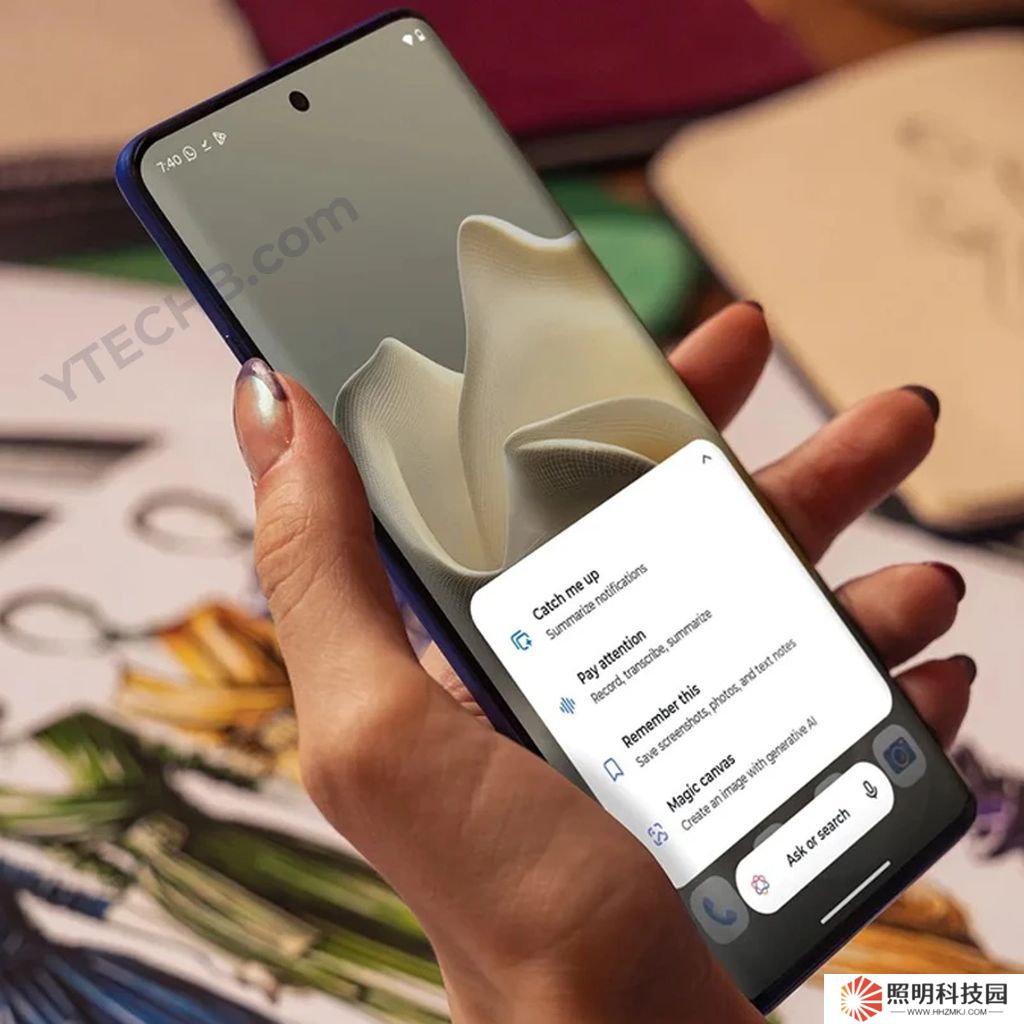 設計方面,本站援引博文介紹,Edge 60 Pro 手機機身左側新增 Moto AI 鍵。消息稱該鍵可快速啟動 Moto AI 搜索欄,提供包括 Catch Me Up、保存截圖、生成 AI 圖像、AI 搜索和日記等多種智能工具。這項創新將進一步提升用戶體驗,展現摩托羅拉在 AI 領域的探索。