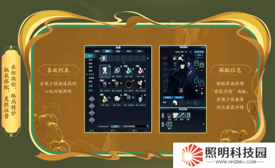 少俠可將鼠標懸停在指定外觀部件上,點擊“喜歡”圖標將對應外觀加入至頂部喜歡列表中,方便少俠快速找到心儀的外觀部件。搭配界面新增“套裝詳情”面板,方便少俠查看對應外裝所屬套裝詳情。原本肩飾拆分為左、右及披風三個部位,提供更多的外觀搭配組合空間。新增擊敗特效和擊敗表現衣柜槽位,對應的外觀可在后續神池問影系統中獲得。
