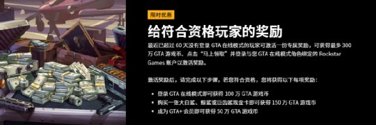 近日,R星發布了游戲公告,針對《GTAOL》的玩家回歸,官方通過贈送300萬游戲幣來吸引玩家。