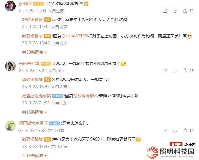 在評論區,該博主還針對網友們的熱議話題給出了回應。對于iQOO和一加品牌中端性能機型的發布時間,博主透露4月份iQOO將率先推出Z10,而一加則緊隨其后發布13T。關于realme真我新機的攝像頭配置,博主表示新機主打的是大容量電池和搭載天璣9400+處理器,影像方面則主要滿足日常掃碼需求。