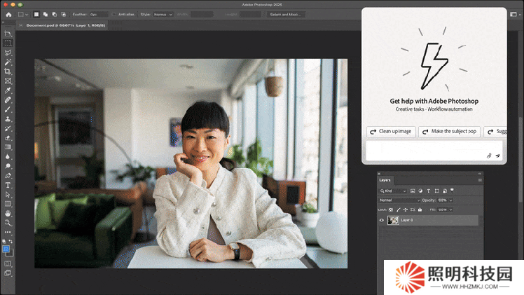 Adobe 的愿景是讓 Photoshop 用戶能夠通過自然語言與 AI 助手進(jìn)行交互,從而更輕松地學(xué)習(xí)執(zhí)行任務(wù)所需的步驟(盡管 AI 助手可以為用戶完成這些操作)。用戶還可以繼續(xù)通過自然語言提示代理進(jìn)行更多更改,或者在圖層中手動(dòng)進(jìn)行調(diào)整。在一個(gè)示例視頻中,用戶要求代理清理圖像并在人物后方添加文本框,代理隨后列出了包括“移除背景人物”、“自動(dòng)提亮”、“移除分散注意力的物體”、“創(chuàng)建‘主體’圖層”、“創(chuàng)建文本圖層”和“整理圖層”在內(nèi)的操作步驟。