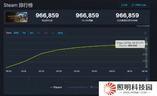 卡普空最新動作游戲《怪物獵人:荒野》,已于各大平臺解禁。PC版本在今天下午一點開放后,也迅速吸引了大批玩家的涌入。據Steam DB統計的數據,《怪物獵人:荒野》的Steam在線人數峰值現已突破90萬。