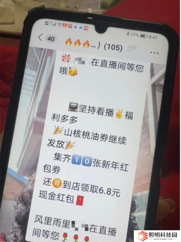 劉鵬出示的群聊截圖顯示,這個(gè)名為“富民路店長(zhǎng)服務(wù)(2 群)”的群有 105 名成員,群聊十分活躍。管理員不時(shí)發(fā)布“堅(jiān)持看播,福利多多”“山核桃油券繼續(xù)發(fā)放”“還可到店領(lǐng)取 6.8 元現(xiàn)金紅包”等信息。開(kāi)播前,管理員會(huì)發(fā)紅包,標(biāo)注開(kāi)播時(shí)間。相應(yīng)“兌換券”通常在直播開(kāi)始、中間、結(jié)尾 3 個(gè)時(shí)段發(fā)放,要領(lǐng)到券得全看完。