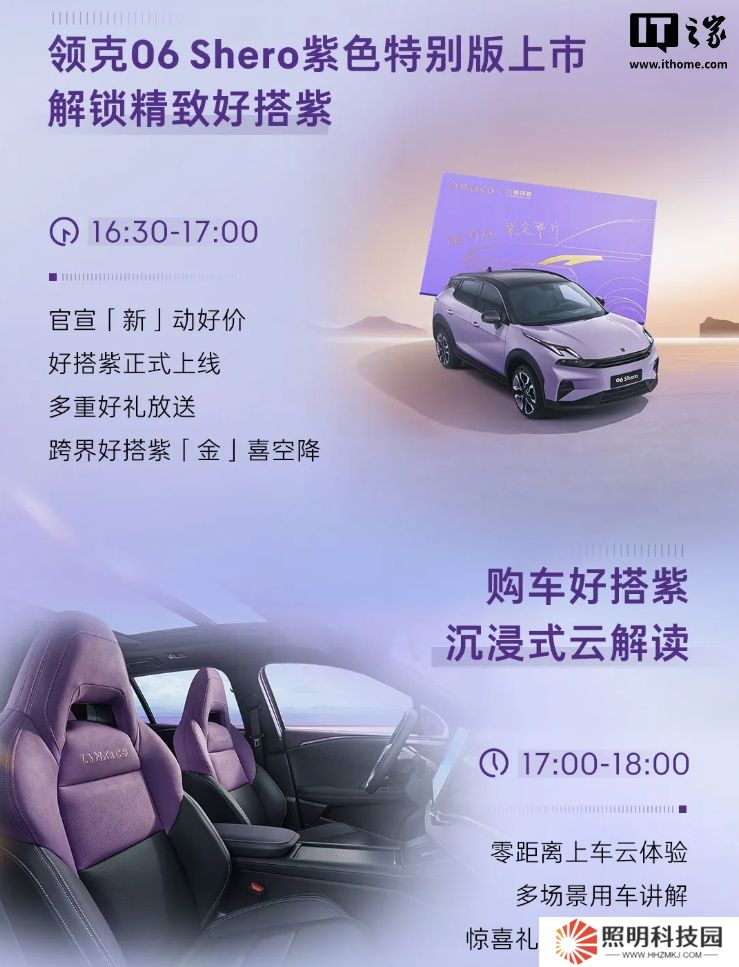 根據(jù)規(guī)劃,領克 06 Shero 紫色特別版汽車將在 16:30-17:00 官宣價格。