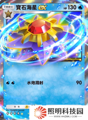 3、另一張強(qiáng)勢卡牌寶石海星,作為一階進(jìn)化卡,它的血量高達(dá)130點(diǎn),僅需兩個能量就能打出90點(diǎn)傷害,而且還可以利用免費(fèi)撒退的優(yōu)勢,打斷對方的進(jìn)攻節(jié)奏