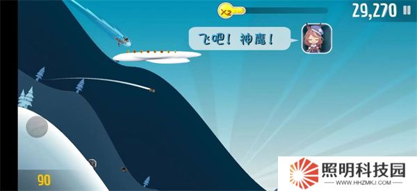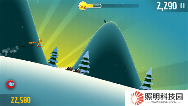2、進入到場景內(nèi)后,玩家們將控制著角色進行滑雪冒險,點擊屏幕即可控制角色跳躍。