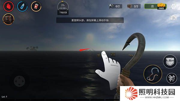 2、你將能夠操控角色在木筏和水中移動,使用【操縱桿】控制。