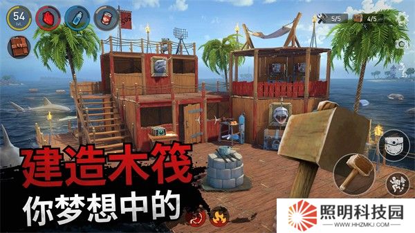 2.你應該不斷升級木筏擴大其高度和寬度,并進行各種升級以提高自己的生存能力。