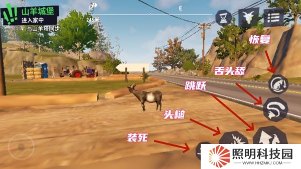 1、玩家們進入游戲之后將能夠正式的操作自己的山羊來進行冒險,通過下方的按鍵來完成各種各樣的任務。