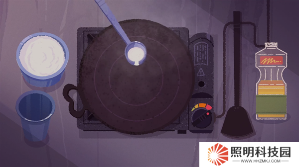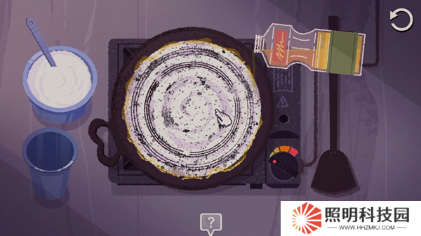3、然后玩家們點擊拖動右側(cè)的油瓶在煎餅周圍到上一點。