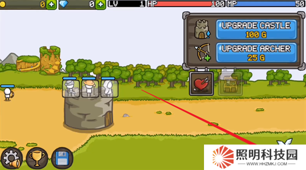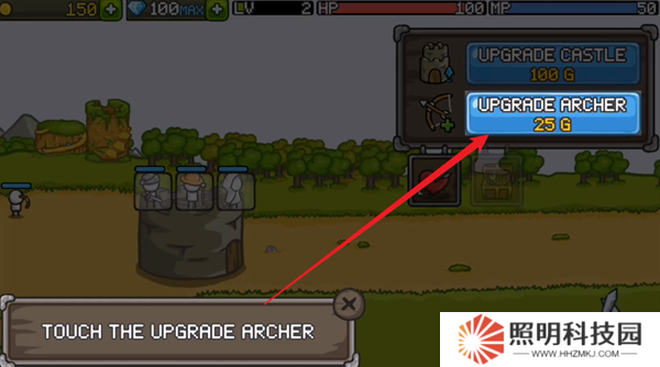 6、完成了波次的作戰之后,就會再次進入備戰狀態,點擊右上角的升級按鈕,就能夠對自己的弓箭手進行升級。
