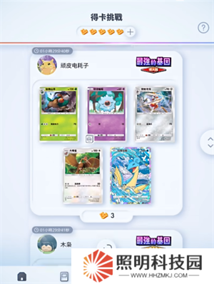 12、【得卡挑戰】里面都是其他玩家們開出來的卡包情況,當你擁有免費挑戰次數的時候,就能夠免費從里面獲得一張。