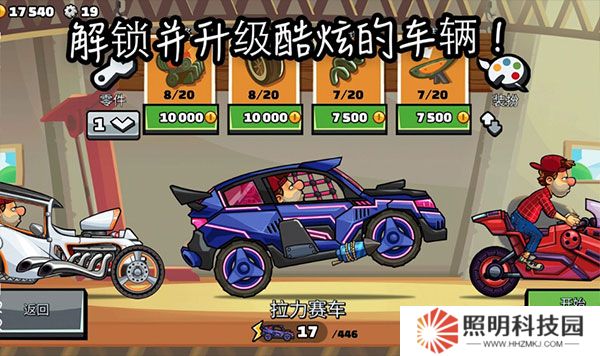 3、玩家們可以對賽車進行自定義的設計,升級車輛的各種配件提高車輛的整體性能。