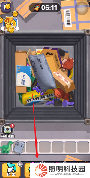 2、通過點擊,將框子里面的物品湊齊三個,就能夠將其進行消除。