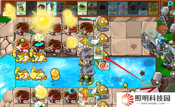 1、玩家們首先需要將促銷堅(jiān)果的消耗降到0點(diǎn),然后種植一個(gè)促銷堅(jiān)果。