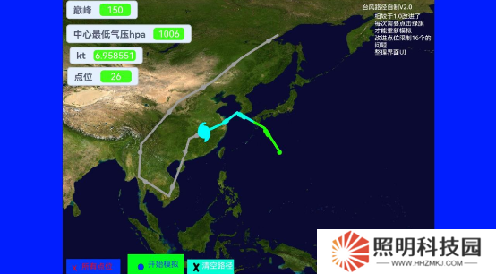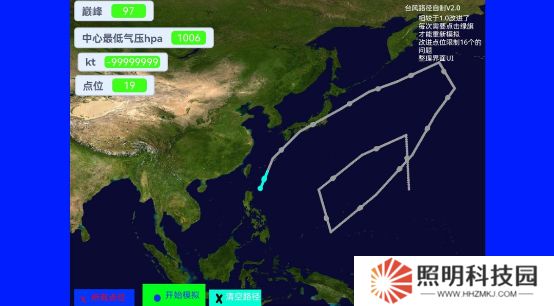 4、臺風會沿著點位來進行行動,并由此呈現出一個模擬的路線圖。