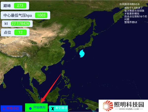5、完成了臺風的模擬之后,點擊左下角的清除路徑,就能夠開始下一次模擬。
