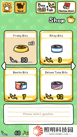 3、在菜單界面里面選擇購(gòu)物,用于購(gòu)買各種吸引貓咪的物品。