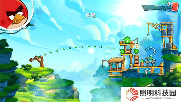 3、進(jìn)入到場(chǎng)景內(nèi)后玩家們拖動(dòng)彈弓瞄準(zhǔn)小豬進(jìn)行彈射。