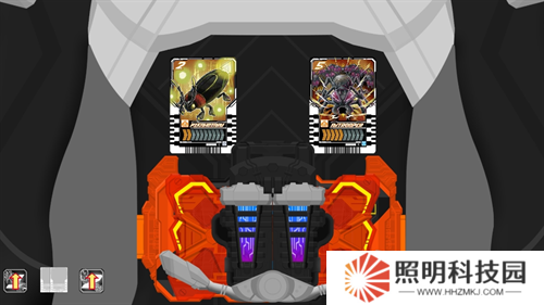 3、將選定的兩張卡牌放入腰帶模擬器中,然后點擊腰帶的右側按鈕,會聽到強烈的音效,并看到中間閃爍出五顏六色的光芒。