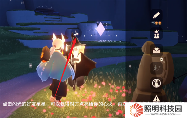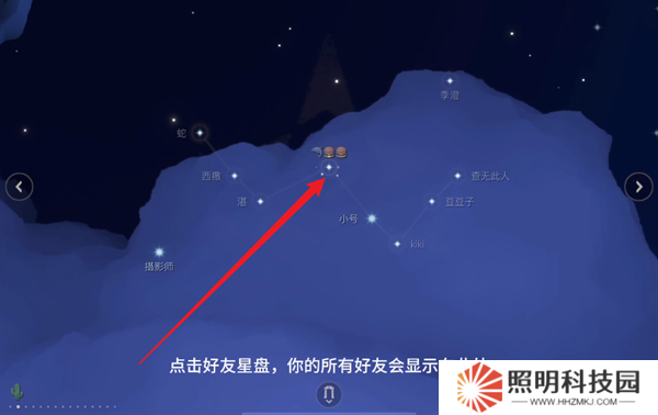 2、然后空中就會顯示好友的新盤,此時點擊正在閃光的好友星星。