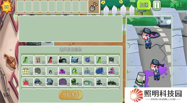 4、進(jìn)入到關(guān)卡內(nèi)后,可以看到右側(cè)是僵尸的類(lèi)型,選擇植物搭配進(jìn)行出戰(zhàn)。
