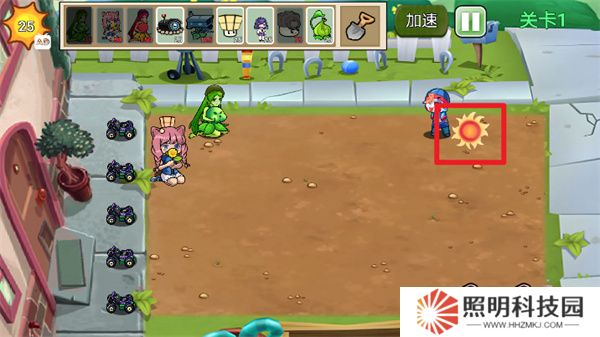 5、進(jìn)入到場(chǎng)景內(nèi)后,玩家們需要收集場(chǎng)景內(nèi)掉落的陽(yáng)光購(gòu)買(mǎi)植物進(jìn)行種植。