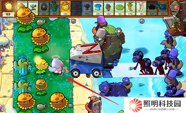 1、玩家們首先在需要魅惑的僵尸面前種植丘比特魅惑菇射手。