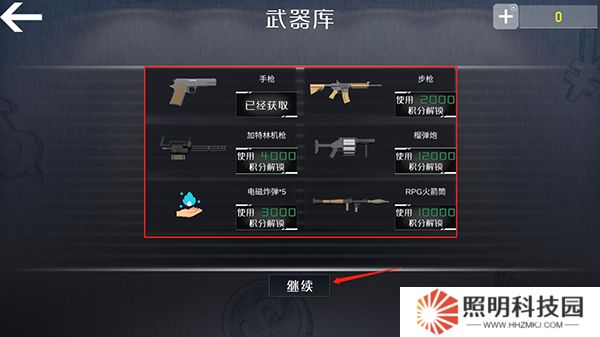 2、進入到游戲內后,玩家們選擇使用的武器裝備,選擇完成后點擊繼續。