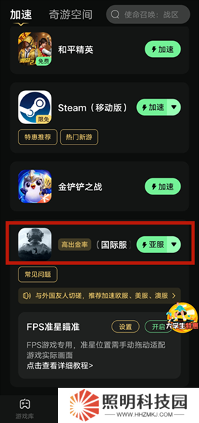 1、在本站下載安裝游戲后打開加速器,找到游戲點擊加速。