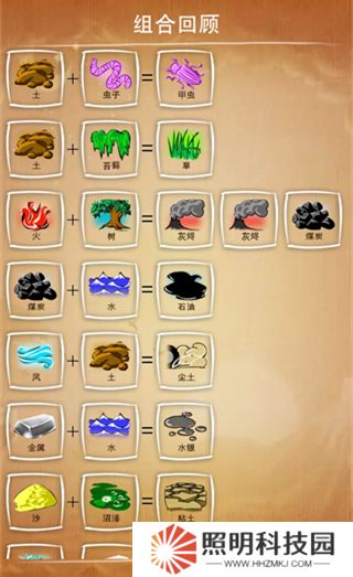 游戲玩法極具創(chuàng)意,玩家通過將兩個(gè)分組中的元素進(jìn)行結(jié)合就能產(chǎn)生新的元素,例如土和火可以產(chǎn)生巖漿,巖漿和水可以產(chǎn)生巖石和水蒸氣,土和風(fēng)可以產(chǎn)生塵土,水和塵土可以產(chǎn)生沼澤等等。