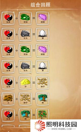 猜謎模式則需要玩家從基礎(chǔ)元素中找出謎底要求元素的推衍途徑。